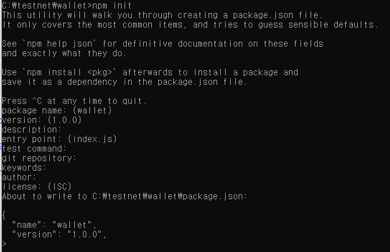 C:\testnet\wallet> npm install jquery ⇐ javascript 라이브러리
