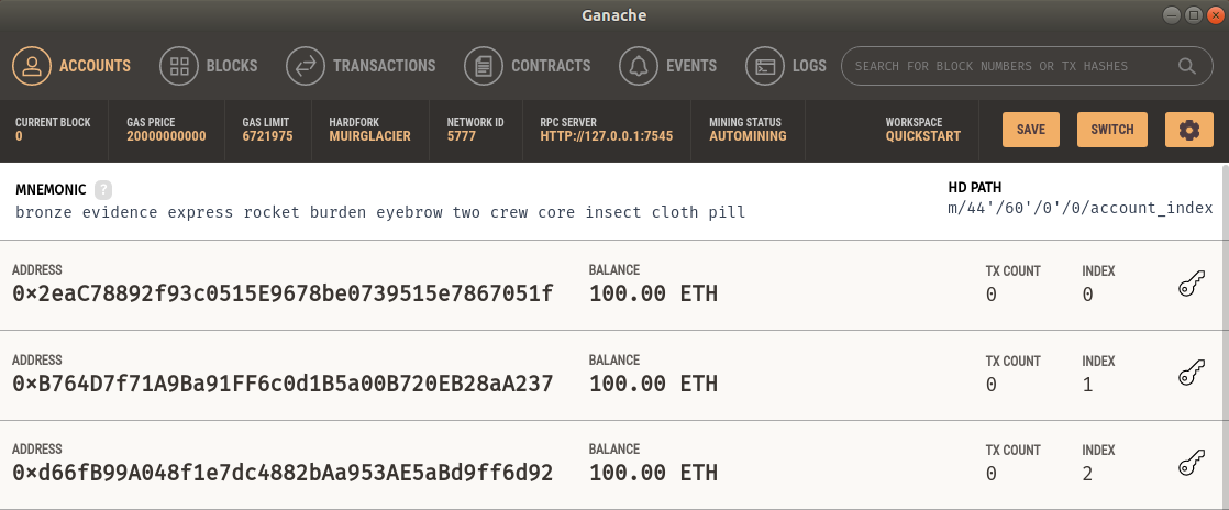 $ ./ganache-2.5.4-linux-x86_64.AppImage