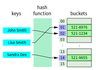 키(key)는 검색 시 사용되는 문자열이고 값(value)은 해당 키와 쌍을 이룬 데이터다. 검색된 각 키는 미리 정의된 해시함수(hash function)를 통해 해시(hash)값을 받고 버킷(bucket)을 가리킨다. 즉, 해시 숫자는 버킷의 index라는 뜻이다. 그리고 버킷에서 검색할 때 입력된 키를 찾고 해당 키와 관련된 값을 반환한다.